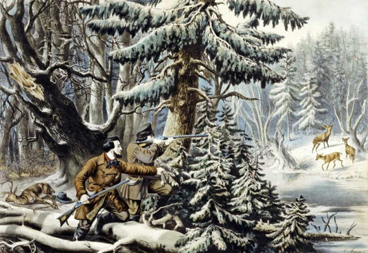 American Winter Sports - Deer Shooting on The Shattagee Black Ornate Wood Framed Art Print with Double Matting by Currier, Nathaniel