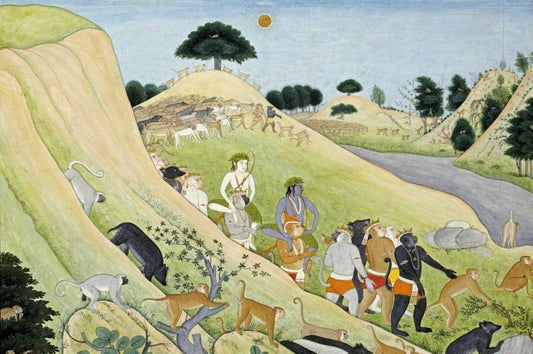 Illustration To The Ramayana Black Ornate Wood Framed Art Print with Double Matting by Tehri-Garwhal