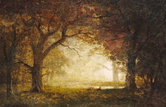 Forest Sunrise Black Ornate Wood Framed Art Print with Double Matting by Bierstadt, Albert