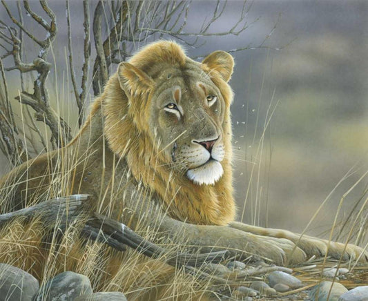 Lion Black Ornate Wood Framed Art Print with Double Matting by Weenink, Jan