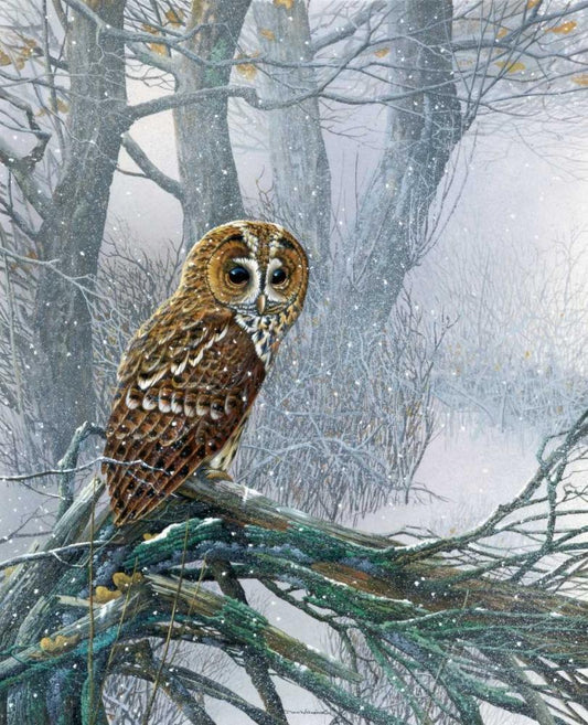 Owl in snowy forest Black Ornate Wood Framed Art Print with Double Matting by Weenink, Jan