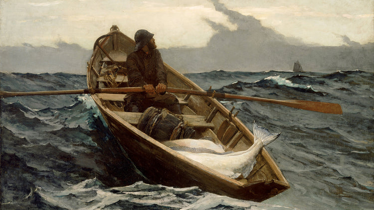 Fishing The Falls White Modern Wood Framed Art Print by Homer, Winslow