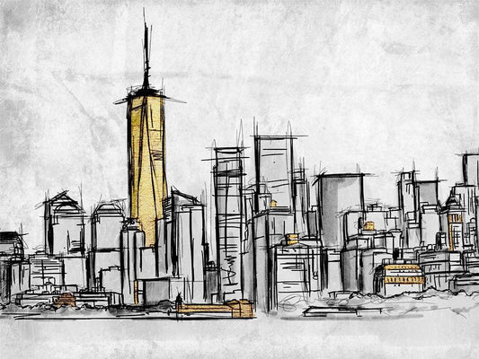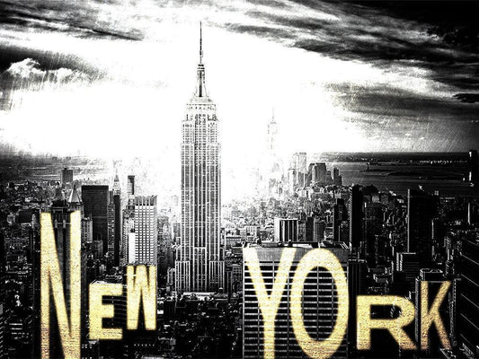 Golden NY White Modern Wood Framed Art Print with Double Matting by Villa, Mlli