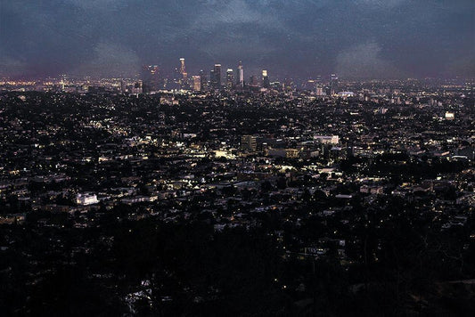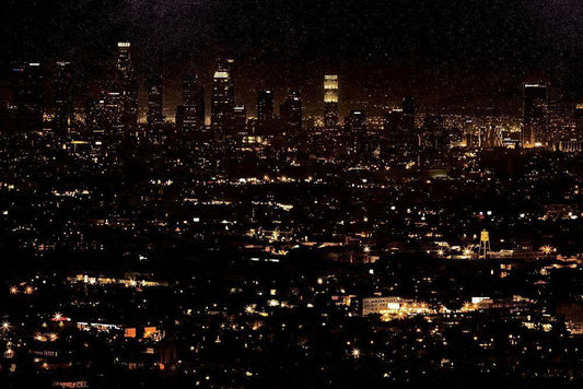 LA At Night White Modern Wood Framed Art Print with Double Matting by Villa, Mlli