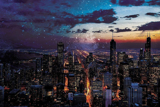 Chicago Skyline White Modern Wood Framed Art Print with Double Matting by Villa, Mlli