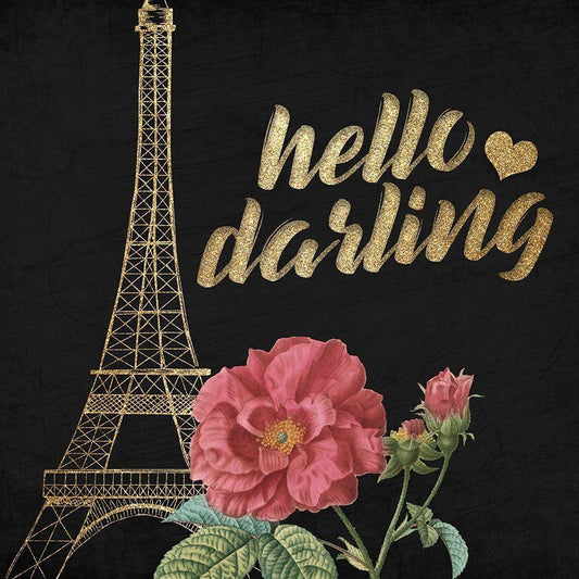 Paris Bonjour 1 White Modern Wood Framed Art Print with Double Matting by Kimberly, Allen