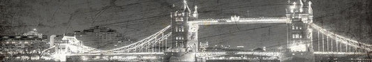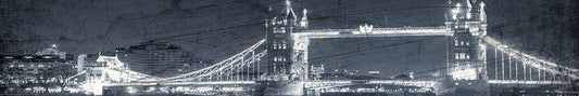 London Bridge at Night Blue White Modern Wood Framed Art Print with Double Matting by Kimberly, Allen