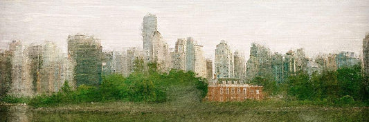NYC Lights White Modern Wood Framed Art Print with Double Matting by Kimberly, Allen