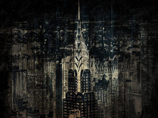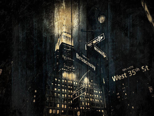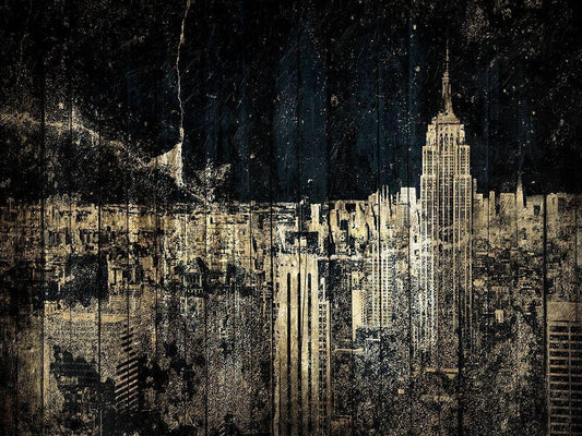New York Gold City White Modern Wood Framed Art Print with Double Matting by Grey, Jace