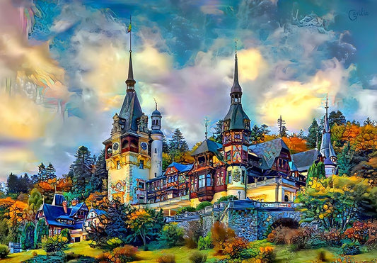 Sinai Romania Peles Castle White Modern Wood Framed Art Print with Double Matting by Gavidia, Pedro