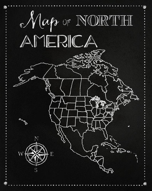 Chalk Map Of North America White Modern Wood Framed Art Print with Double Matting by Lavoie, Tina