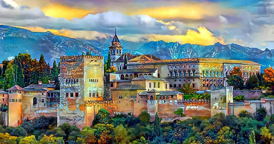 Granada Spain La Alhambra White Modern Wood Framed Art Print with Double Matting by Gavidia, Pedro