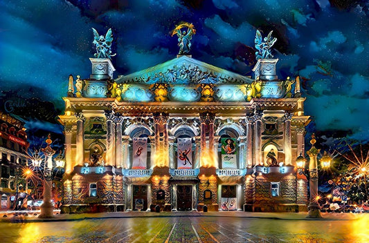 Leopolis Ukraine Opera White Modern Wood Framed Art Print with Double Matting by Gavidia, Pedro