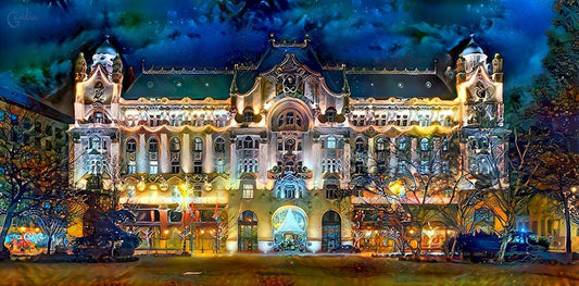 Hungary Budapest Gresham Palace White Modern Wood Framed Art Print with Double Matting by Gavidia, Pedro