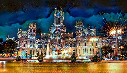Madrid Spain Cibeles Palace White Modern Wood Framed Art Print with Double Matting by Gavidia, Pedro