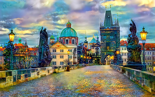 Prague Czech Republic Charles Bridge White Modern Wood Framed Art Print with Double Matting by Gavidia, Pedro
