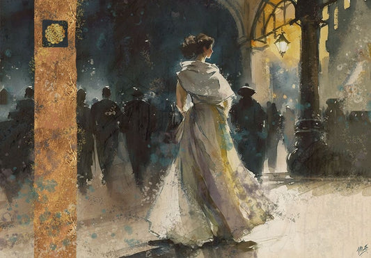Geisha- Light Black Ornate Wood Framed Art Print with Double Matting by Wiley, Marta