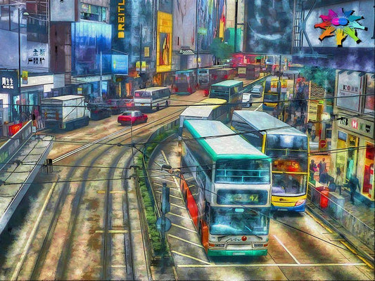 Hong Kong Bus Lines White Modern Wood Framed Art Print with Double Matting by Bolokofsky, Ronald