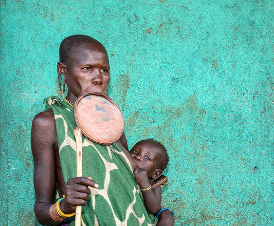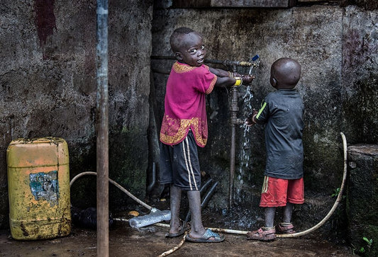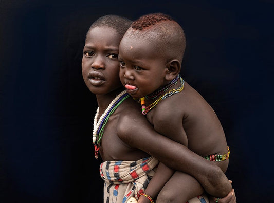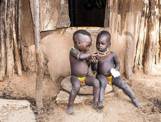 Surmi Tribe Children Cleaning Their Hands Before Starting To Eat - Ethiopia Black Ornate Wood Framed Art Print with Double Matting by Inazio Kuesta, Joxe