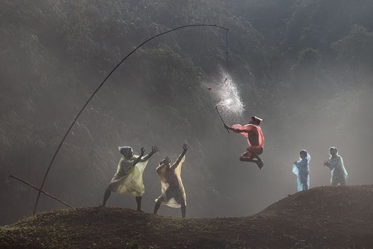 Pecah Balon Black Ornate Wood Framed Art Print with Double Matting by Suhardjo, Lisdiyanto