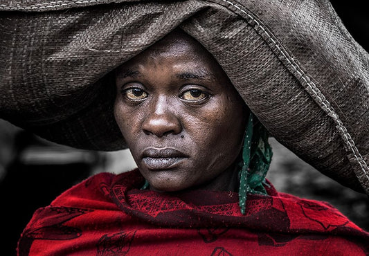 Ethiopian Woman Back Home. Black Ornate Wood Framed Art Print with Double Matting by Inazio Kuesta, Joxe