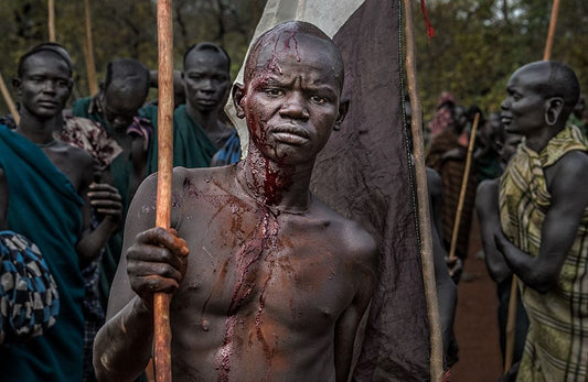 The Winner Of A Donga Fight In Ethiopia. Black Ornate Wood Framed Art Print with Double Matting by Inazio Kuesta, Joxe