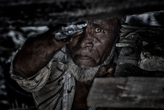 Man Tarring The Keel Of A Ship - Bangladesh Black Ornate Wood Framed Art Print with Double Matting by Inazio Kuesta, Joxe
