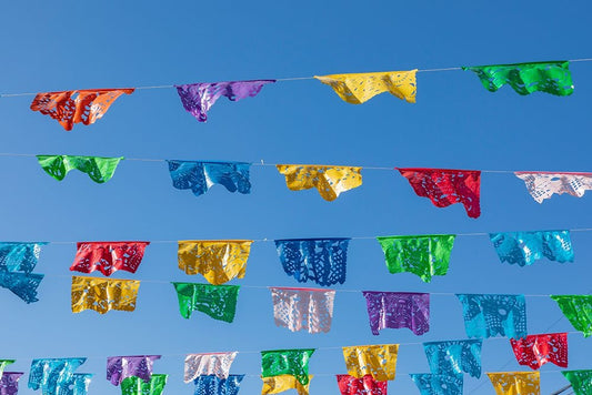 Todos Santos- Baja California Sur- Mexico. Festive colorful banners over a street. Black Ornate Wood Framed Art Print with Double Matting by Wilson, Emily M.