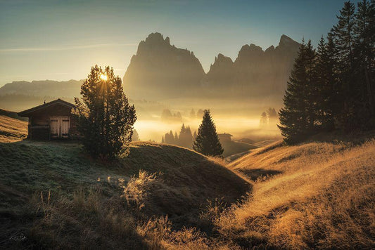 Seiser Alm Dreamscape Black Ornate Wood Framed Art Print with Double Matting by Podt, Martin