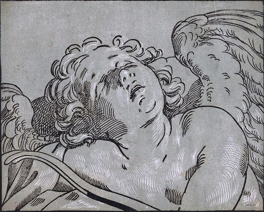 Cupid Black Ornate Wood Framed Art Print with Double Matting by Stellar Design Studio