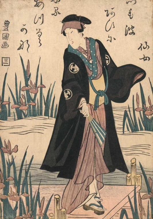 Nihonbashi Bridge in Edo, 1830 Black Ornate Wood Framed Art Print with Double Matting by Hokusai