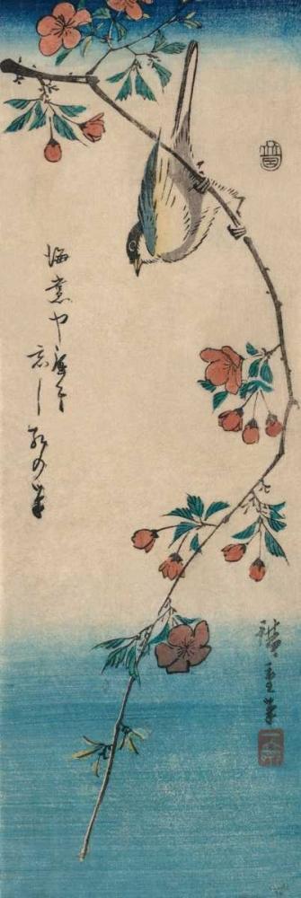 Small bird on a branch of Kaidozakura (Kaido ni shokin), 1844 Black Ornate Wood Framed Art Print with Double Matting by Hiroshige, Ando