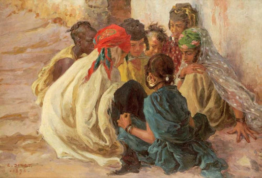 Arab Children Playing Black Ornate Wood Framed Art Print with Double Matting by Dinet, Alphonse Etienne