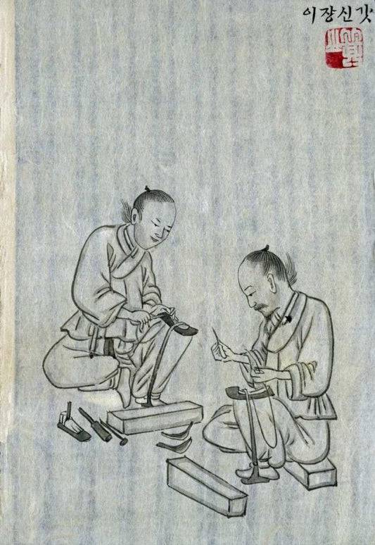 Shoemakers Black Ornate Wood Framed Art Print with Double Matting by Junkeun, Kim