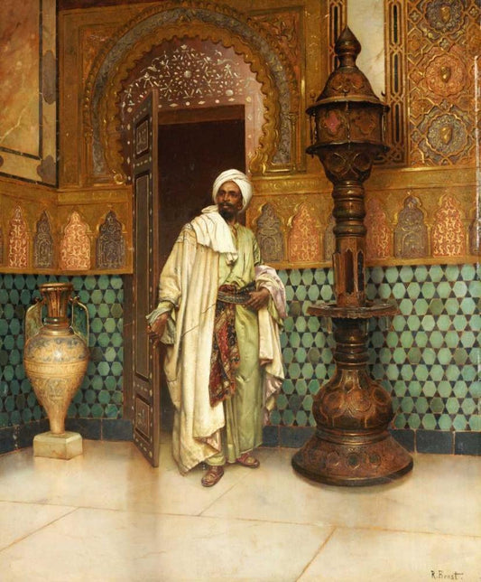 An Arab In a Palace Interior Black Ornate Wood Framed Art Print with Double Matting by Ernst, Rudolf