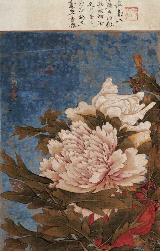 Peonies Black Ornate Wood Framed Art Print with Double Matting by Gang, Shi