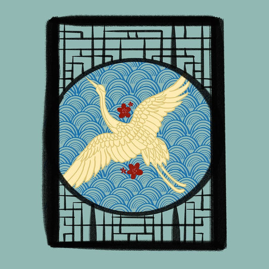 Crane Black Ornate Wood Framed Art Print with Double Matting by Singleton, Ashley