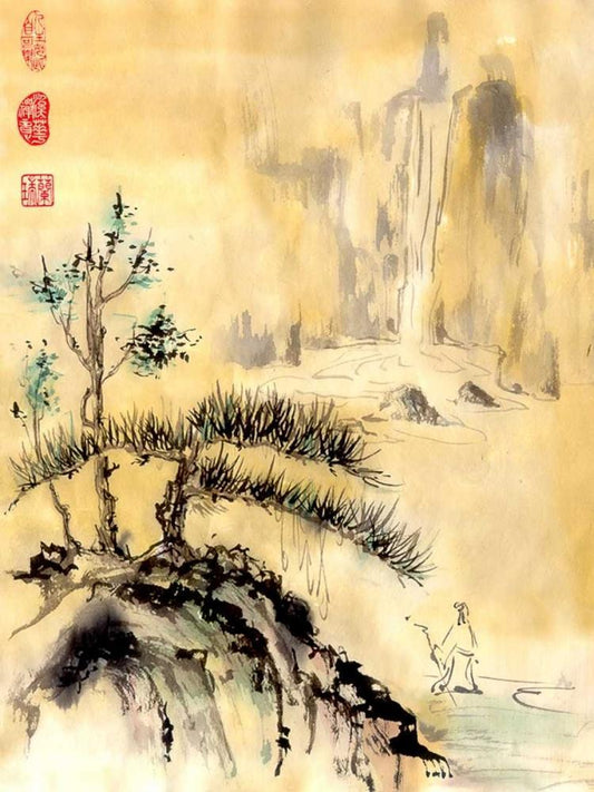 Oriental Silk IV Black Ornate Wood Framed Art Print with Double Matting by Unknown