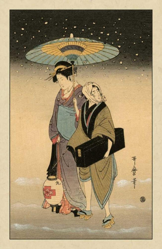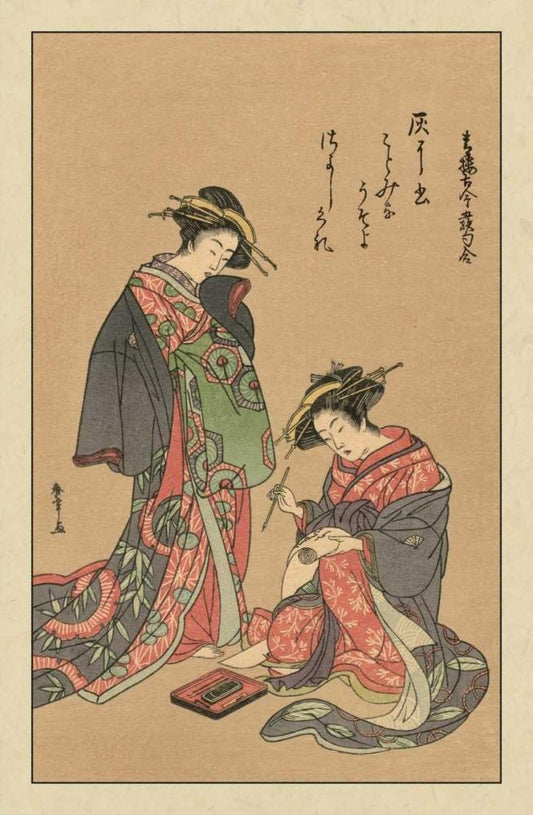 Women of Japan I Black Ornate Wood Framed Art Print with Double Matting by Vision Studio