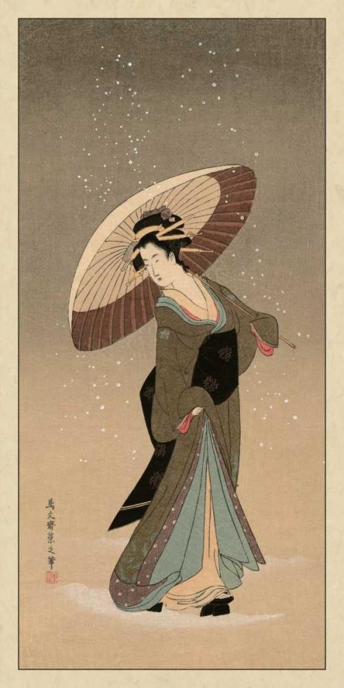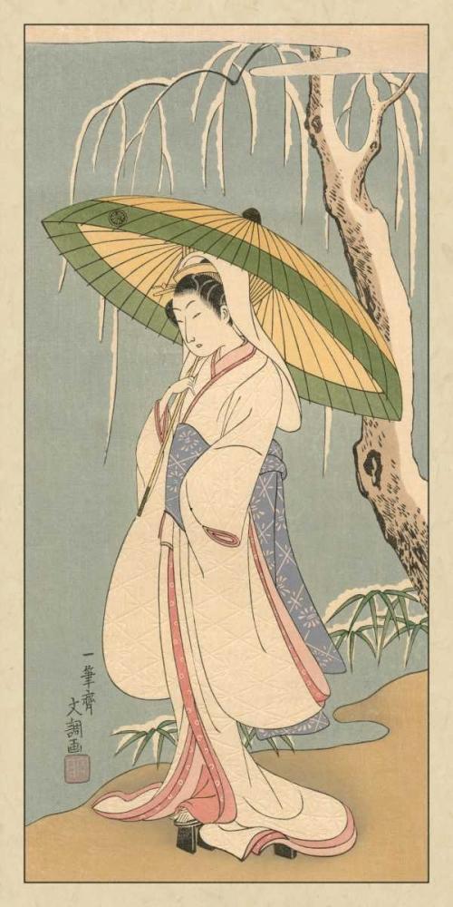 Women of Japan III Black Ornate Wood Framed Art Print with Double Matting by Vision Studio
