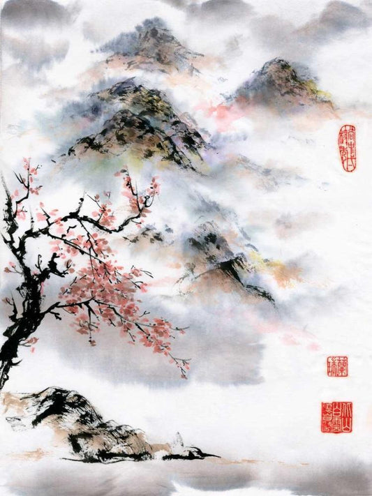 Oriental Silk I Black Ornate Wood Framed Art Print with Double Matting by Unknown