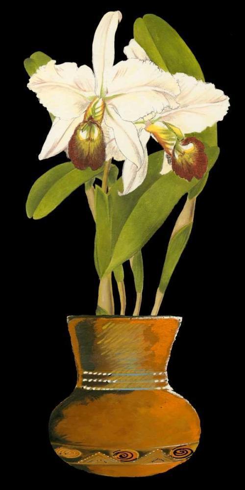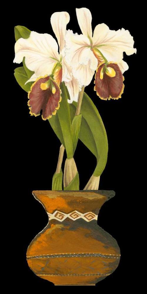 Orchids in Pot I Black Ornate Wood Framed Art Print with Double Matting by Unknown