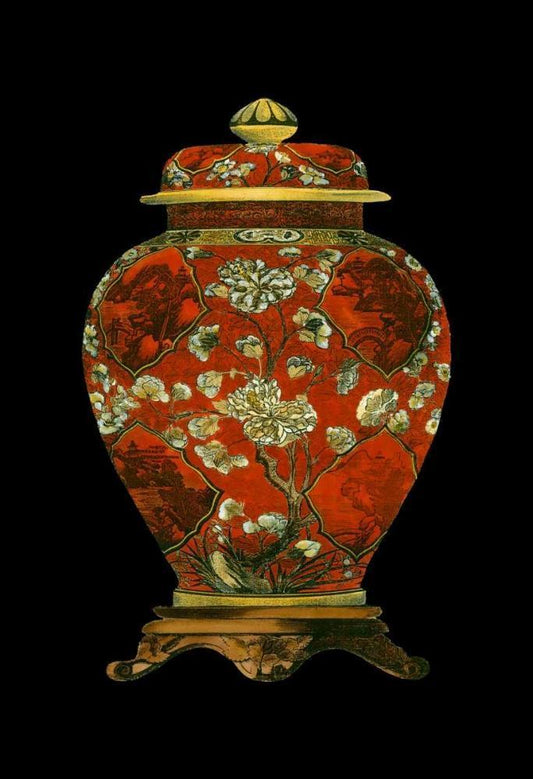 Red Porcelain Vase II Black Ornate Wood Framed Art Print with Double Matting by Unknown