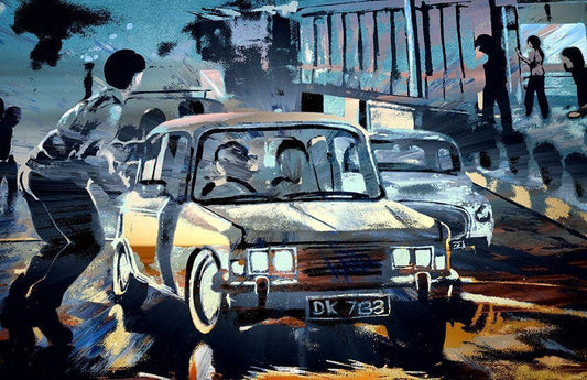 Evening Traffic White Modern Wood Framed Art Print with Double Matting by Bolokofsky, Ronald