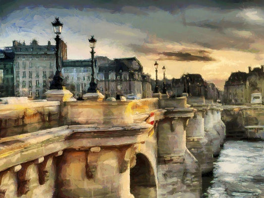 Le Pont-Neuf White Modern Wood Framed Art Print with Double Matting by Bolokofsky, Ronald