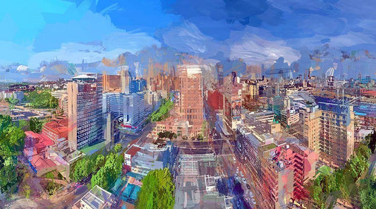 Surfers Paradise Square II White Modern Wood Framed Art Print with Double Matting by Bolokofsky, Ronald