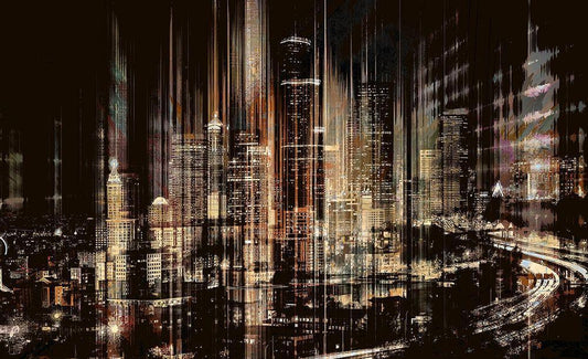 Midnight Skyline White Modern Wood Framed Art Print with Double Matting by Bolokofsky, Ronald