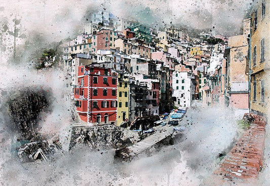 Riomaggiore White Modern Wood Framed Art Print with Double Matting by Bolokofsky, Ronald