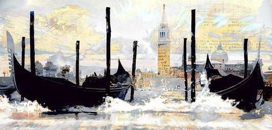 Rough Gondola Waters White Modern Wood Framed Art Print with Double Matting by Bolokofsky, Ronald