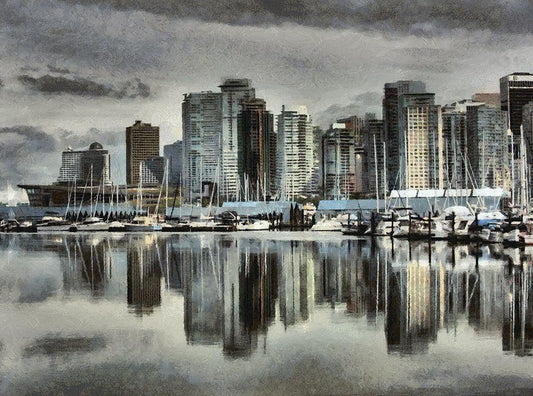 Vancouver Skyline White Modern Wood Framed Art Print with Double Matting by Bolokofsky, Ronald